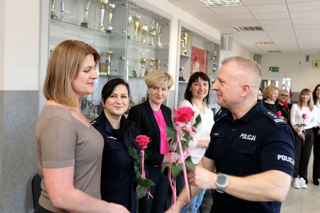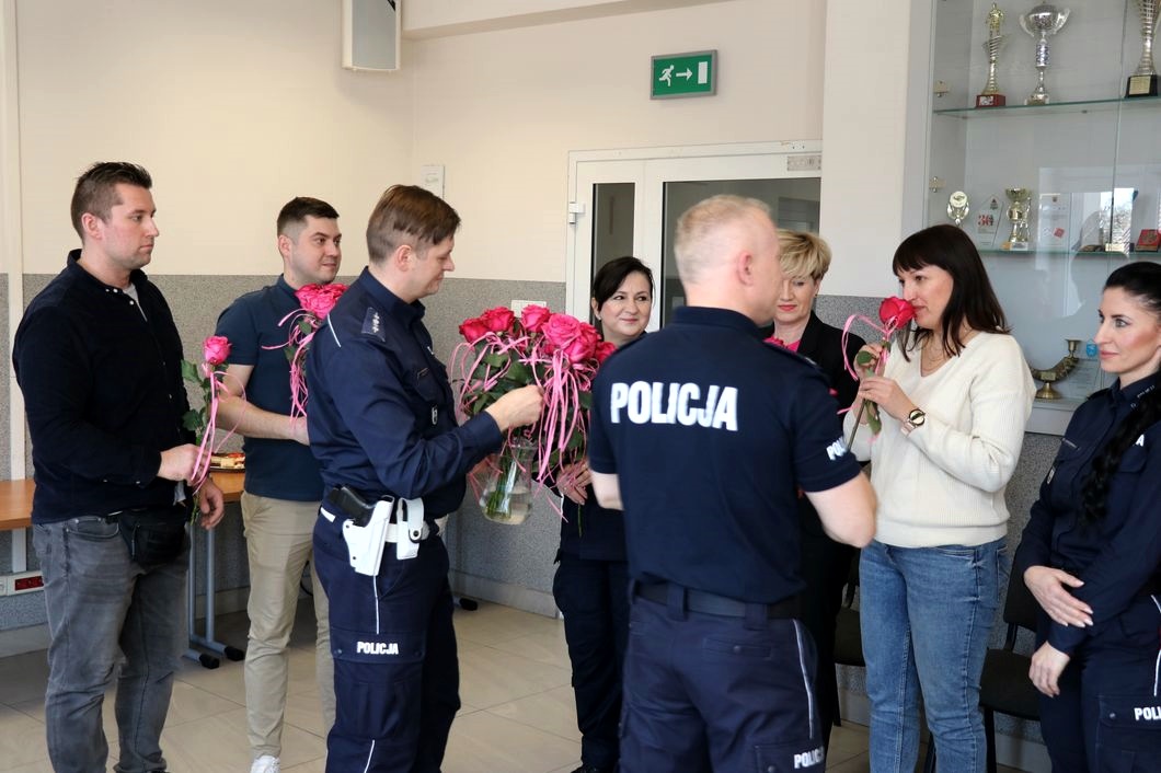 Dzisiaj, z okazji przypadającego w niedzielę Dnia Kobiet, Komendant Powiatowy Policji w Bielsku Podlaskim inspektor Marcin Rymarski spotkał się z pracownicami i funkcjonariuszkami, aby podziękować im za współpracę oraz poświęcenie i oddanie w codziennych obowiązkach służbowych.