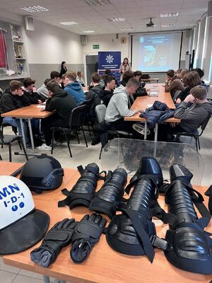 Pracownicy kadr przybliżyli uczniom procedurę doboru do służby. Szczegółowo omówiono etapy postępowania kwalifikacyjnego – od testów wiedzy i sprawności fizycznej, po badania psychologiczne.