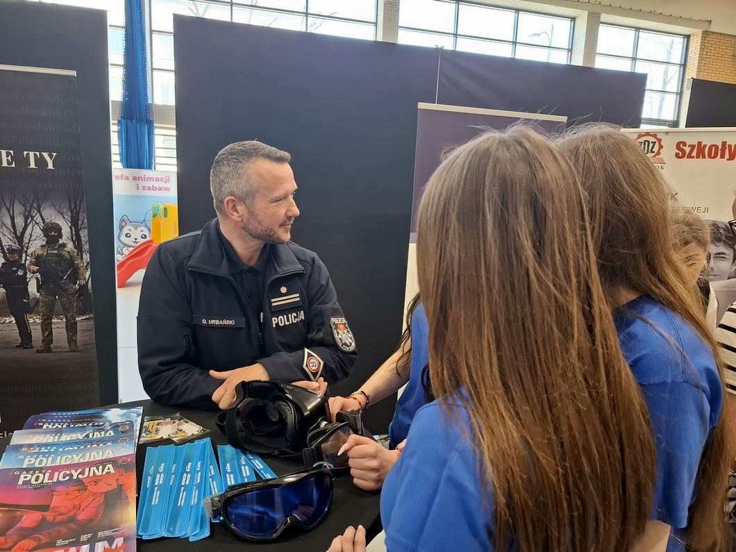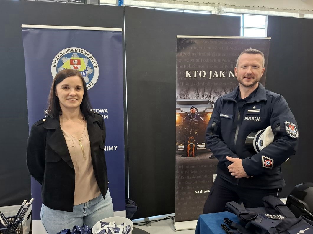 Mundurowi odpowiedzieli na zaproszenie organizatora, którym jest Wojewódzki Urząd Pracy w Białymstoku i spotkali się z uczniami szkół podstawowych i średnich, by promować zawód policjanta. Uczestnictwo w wydarzeniu pozwoliło młodym osobom dowiedzieć się o różnorodnych aspektach służby, poznać proces rekrutacyjny, a przede wszystkim porozmawiać z funkcjonariuszami o ich codziennej pracy. Może to być między innymi służba policjanta ruchu drogowego, prewencji czy służby kryminalnej. W Policji każdy może znaleźć miejsce dla siebie.